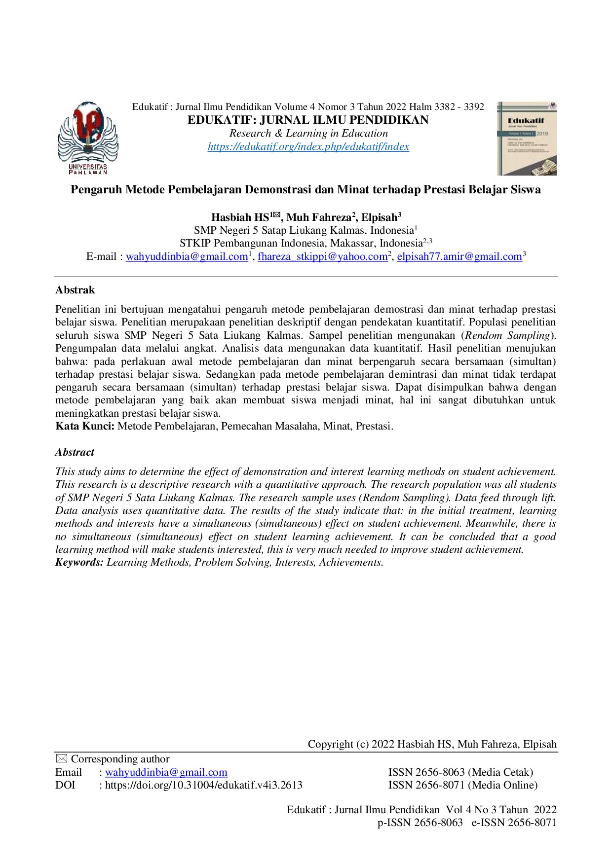 Pengaruh Metode Belajar Demonstrasi dan Minat terhadap Prestasi ...